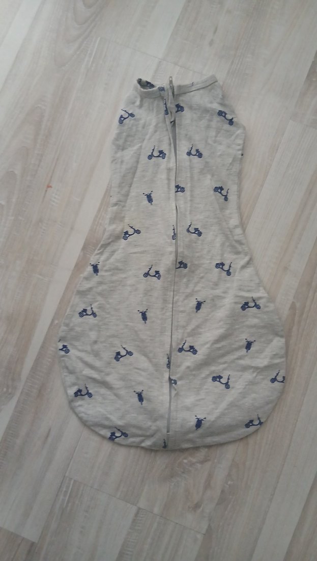 yeni doğan uyku tulum Gri renkli, ön fermuarlı ve küçük scooter desenli bebek uyku tulumu, yumuşak dokusu ile konfor sunar.