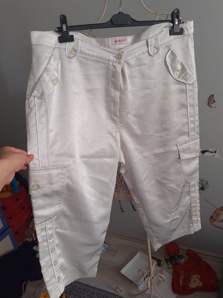Yeni Düğmeli Kısa Kadın Keten Pantolon Kapri 50 beden alfredo