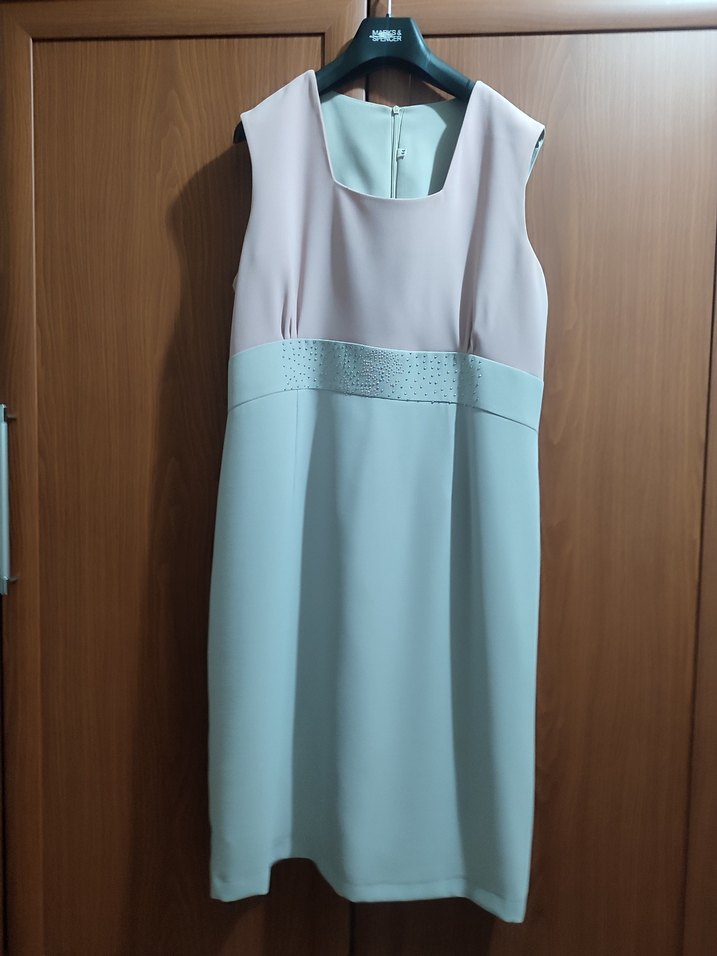 üst toz pembe alt gri renki belden taşlı 44 beden sıfır kol ceketi var 44 yazıyor ama 40 42 bedene uygun çok şık bir elbise 1 defa giyildi