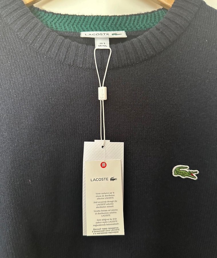 Lacoste marka, lacivert kazak. 5 beden. Omuz 45 cm göğüs 52 uzunluk 71
