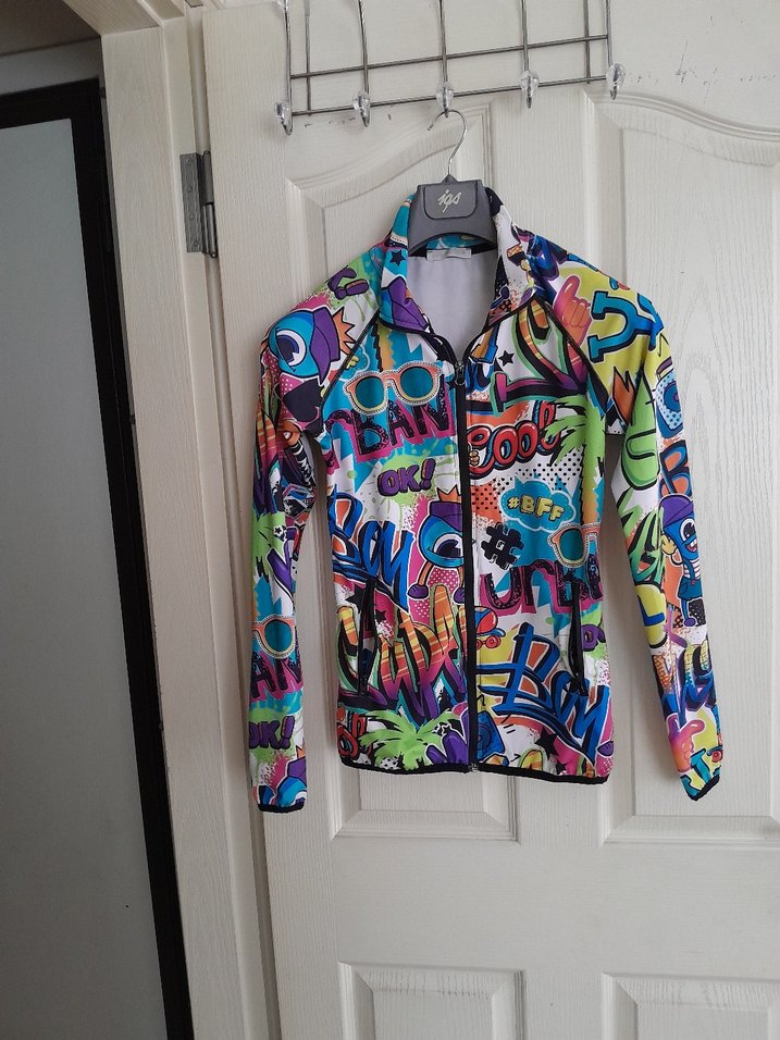Yeni gibi, XS-S bedene uyumlu, dar kalip, tarz desenli, canli renkli, likrali, polyester akrilik kumastan, fermuarli mont satilik. Fiyat dustu! Diger urunlerimede bakiniz. Sehir Caglayan/Kagithane-Ist.