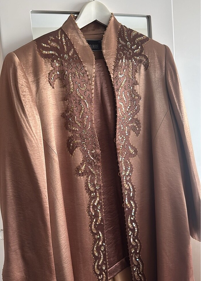 Yeni hiç giyilmedi sıfır abiye pantılon atlet ceket 44 beden pantılonu esneme olmaz diye 46 almıştım pacalarını bile daha yapmadım yepyeni