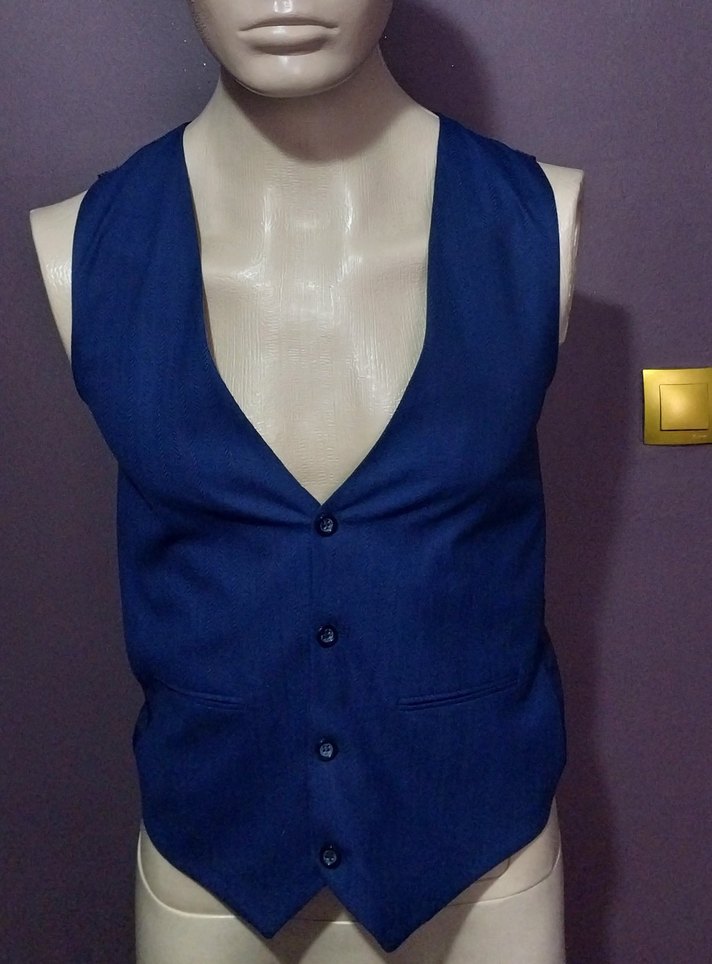 Lacivert erkek kumaş yelek.Yeni.46 beden. koltuk altı arası 47 cm, omuz arası 36 cm, boy 63 cm. Ofis ve sokak stiline uygun.