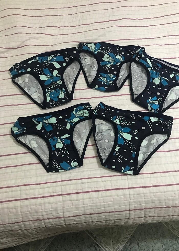Kız çocuk iç külot desenli modelleri kızıma hediye almış teyzesi ama kızıma olmaz 6 tane idi bi tanesi ni kızım denediği için onu eklemedim bunlar yep yeni 2.3.4 yaş İçin uygundur