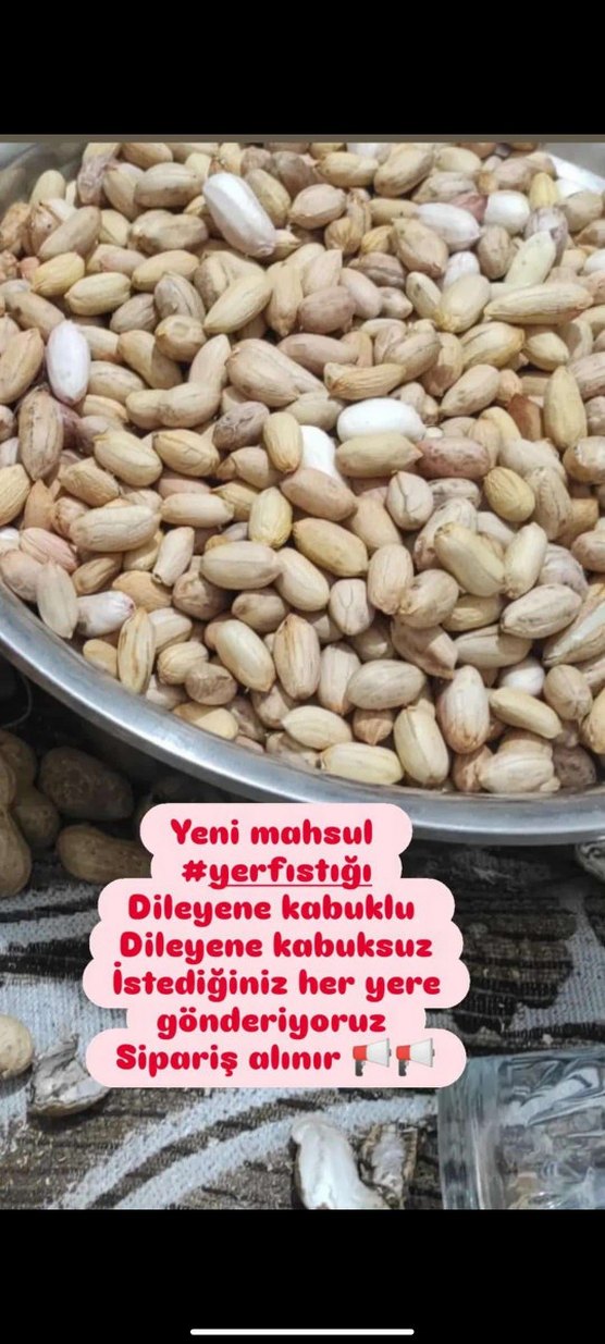Yeni mahsul yer fıstığı, kabuklu veya kabuksuz seçenekleriyle. Sipariş alınır ve istediğiniz yere gönderilir.kabuklu kg 100 tl kabuksuz kızartılmış 200 kızartılmamis 180 tl