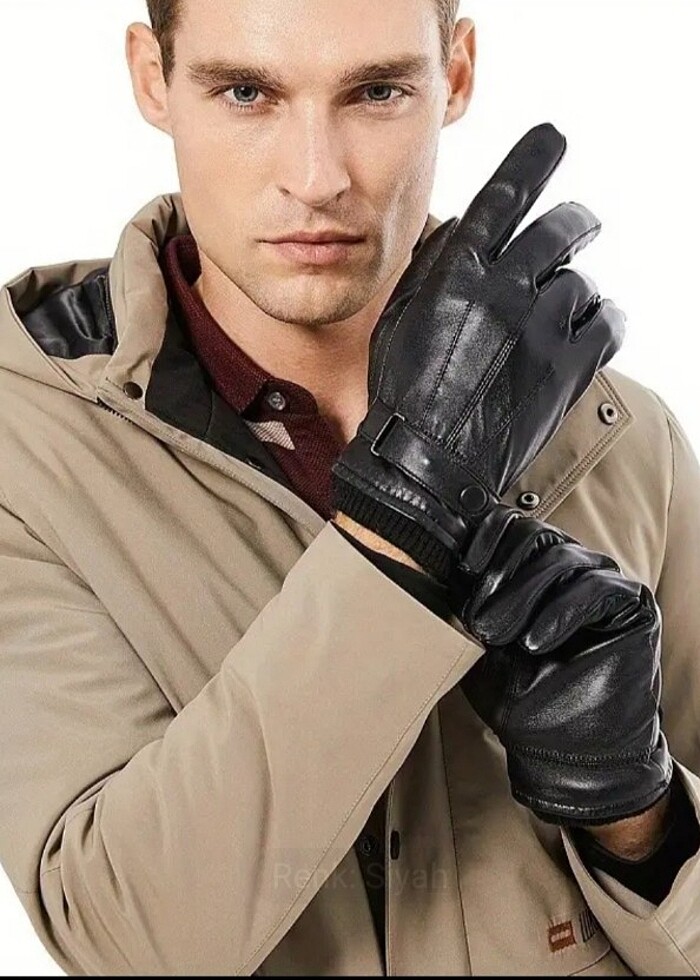 1 Çift Erkek Kış Eldiveni - Kalın Suni Deri, Üç Katmanlı, Klasik Siyah Dış Mekan Binicilik Eldiveni
