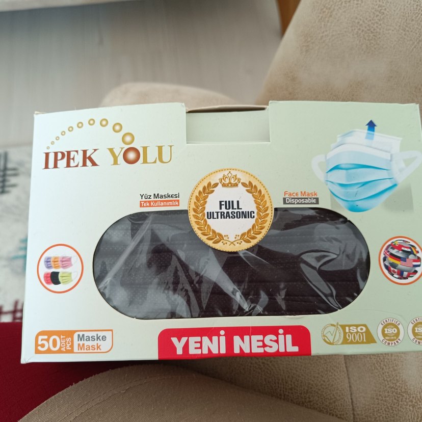 Yeni nesil, tam ultrasonik kaynaklı, tek kullanımlık koyu renkli yüz maskesi. 50 adet, siyah renk, kulak acıtmayan maske, yetişkin boy