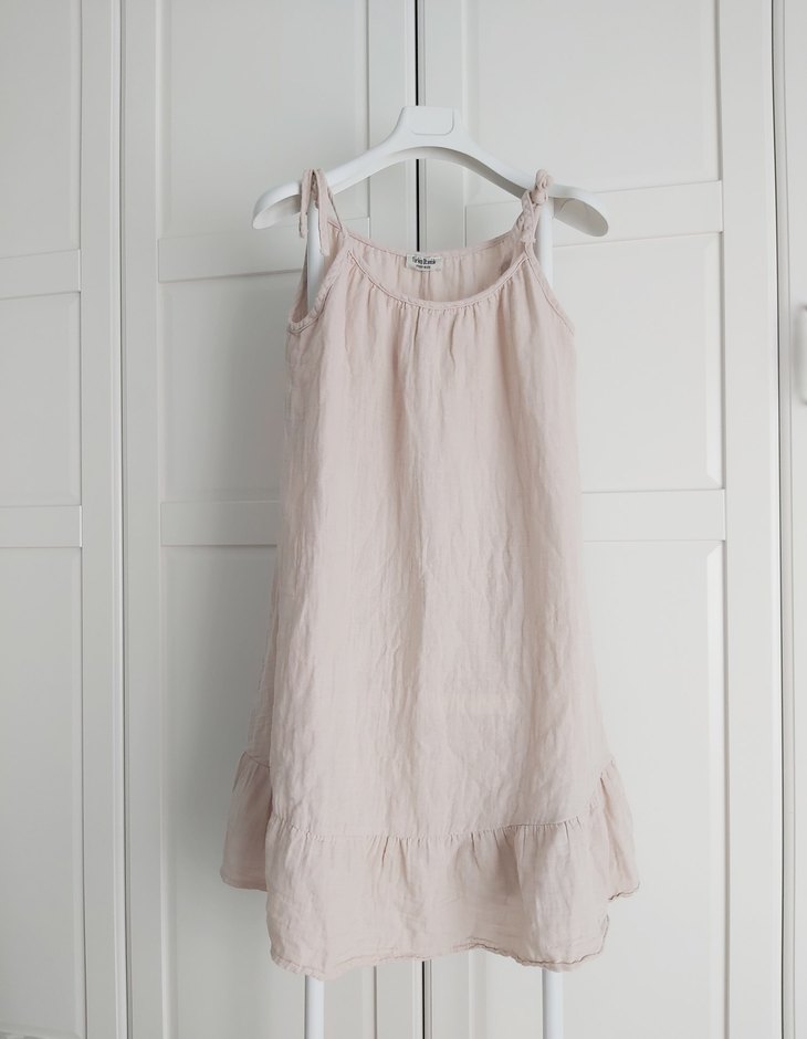 Yeni Otantik Müslin Bej Mini Askılı Rahat Elbise