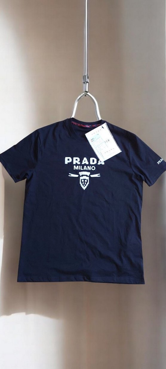 Orjinal değildir. Prada Milano baskılı siyah erkek tişört, kısa kollu ve bisiklet yaka. Normal boy ve rahat kesim, günlük kullanım için uygun.