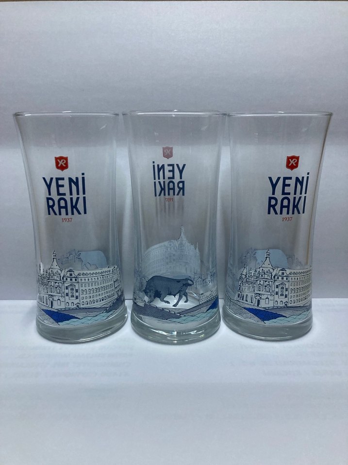Yeni Rakı Temalı 3'lü Kadıköy boğası Cam Bardak Seti