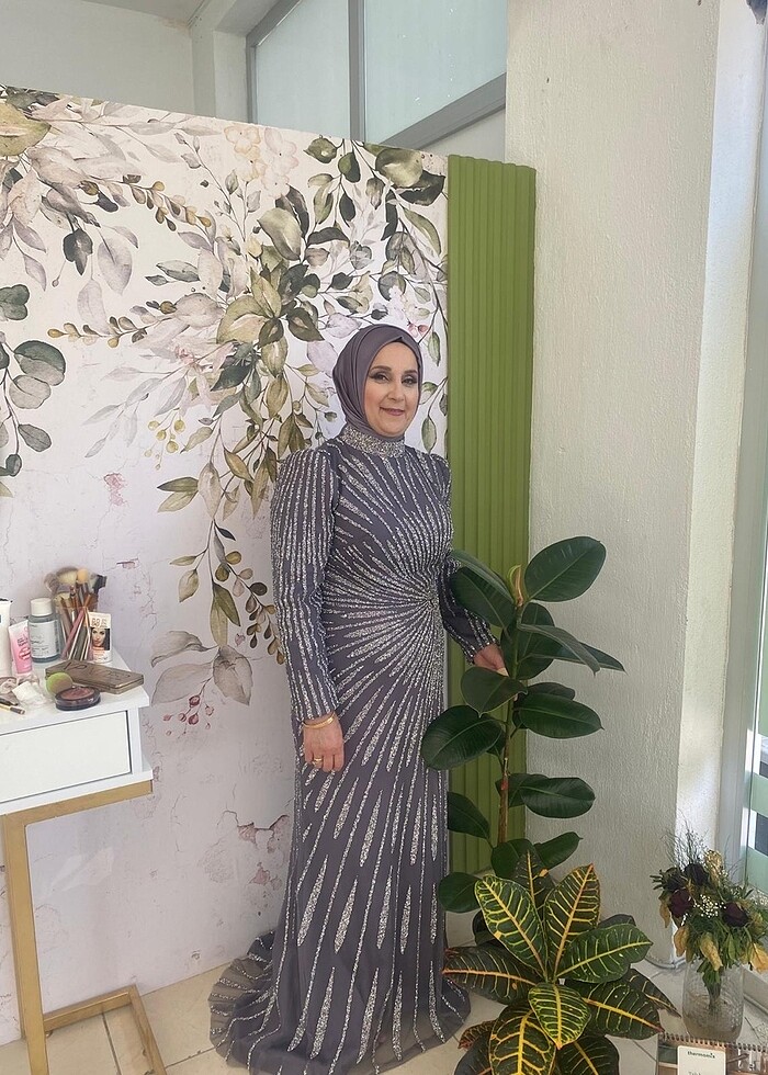 42 bedene uyumlu tam kalıp Boy 155 kg 67 5-6 cm kadar topukluyla giyildi Şalıyla birlikte verilcek arkadan fermuarlı 1 kez giyildi