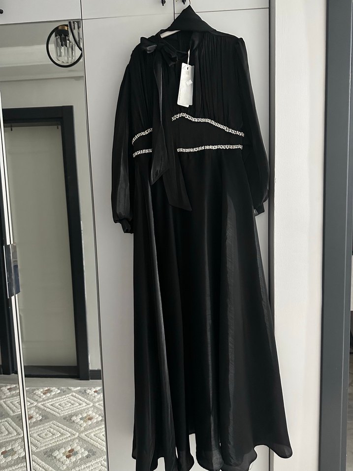 Siyah, taşlıı detaylara sahip uzun, yüksek yakalı ve bol kesim gotik elbisedir. Drapeli tarzıyla klasik bir şıklık sunar. ✨boy 150 cm yeni hiç kullanılmamış tır şal dahil