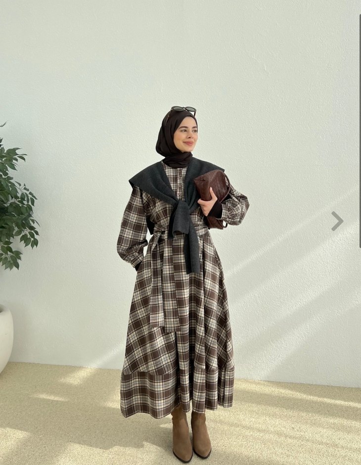 Yeni sezon çok satan ekose elbise pakette 38 40 beden uyumlu yeni aldım pakette duruyor kışlık harika bir şey elbise göğüs kısmı düğmeli iç göstermez cepli tam tesettür elbisesi dökümlü mağazalarda çok popüler 1850 tl aldım uygun fiyata satıyorum günlük için uygun kemerli