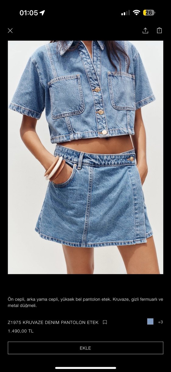 Ön ve arka yama cepli, yüksek bel, kruvaze ve gizli fermuarlı mavi denim mini etek. Rahat kesim, günlük sokak stili için uygun. Takım satıyorum Yeni sezon hiç giyilmedi