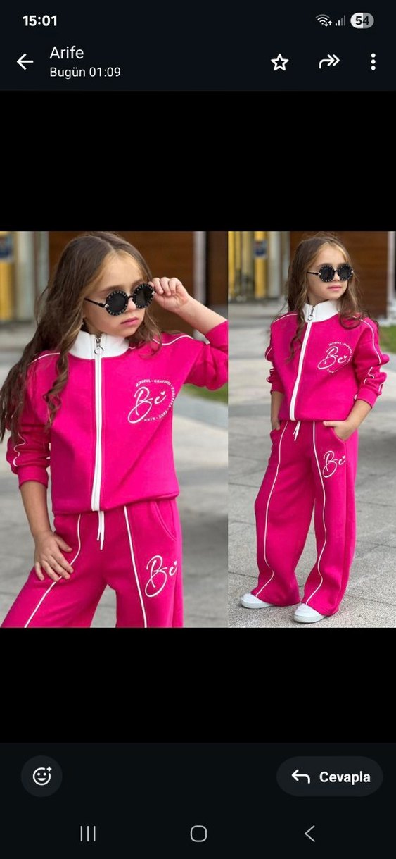 Parlak pembe renkli, bol kesim kız çocuk eşofman takımı. Uzun kollu, fermuarlı üst ve bağcıklı alt, yumuşak kumaştan, sokak stili için tie-dye desenli.