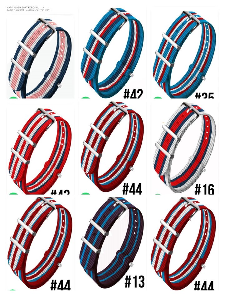 Yeni sıfır çift iki renkli NATO kayışlar kordonlar 18 20 22 mm Ad fiati 450 tl. ⌚
