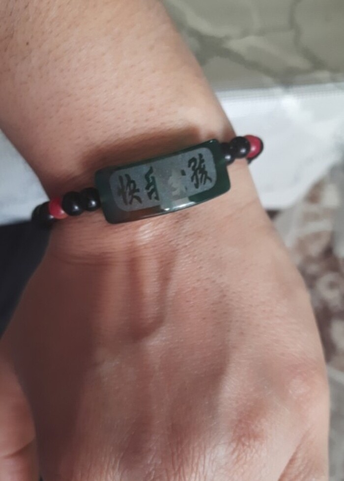El yapımı bileklik üzerinde mutlu kiz yaziyo