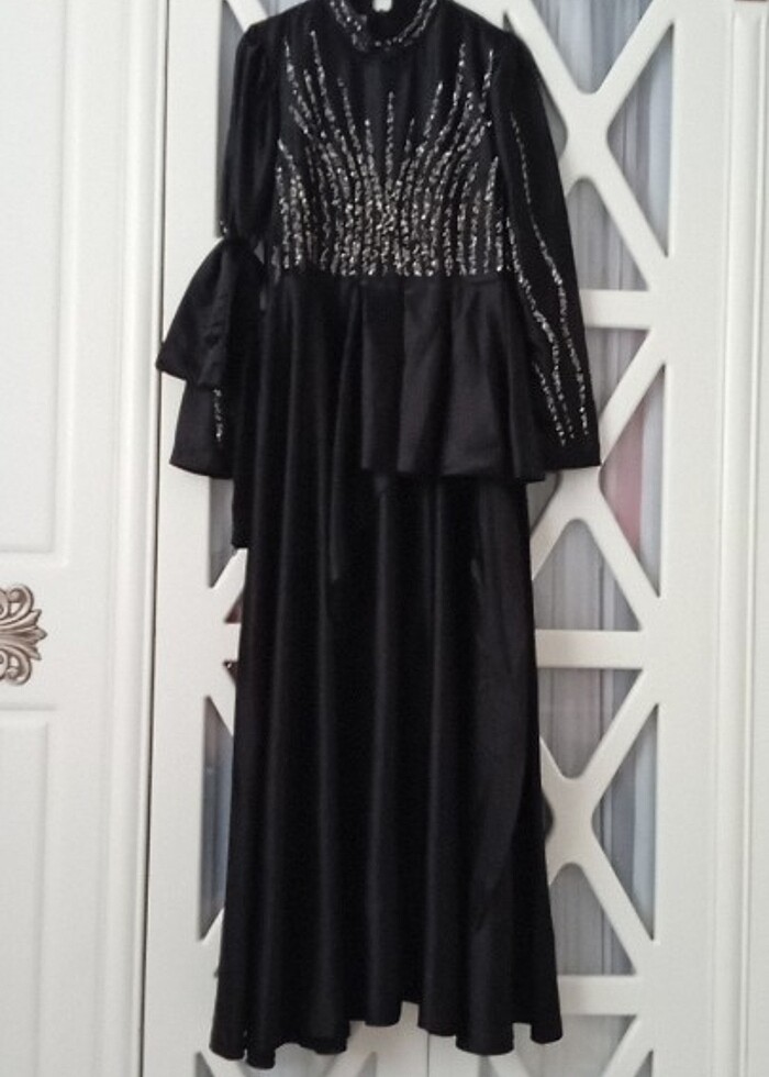 Elbiseyi sadece bir kez giydim 2 saat kadar fotorafta göründüğü gibi sadece bi kolundaki küçük bı kısmında işlemesi kalktı onun dışında bir sorunu yoktur 40 beden