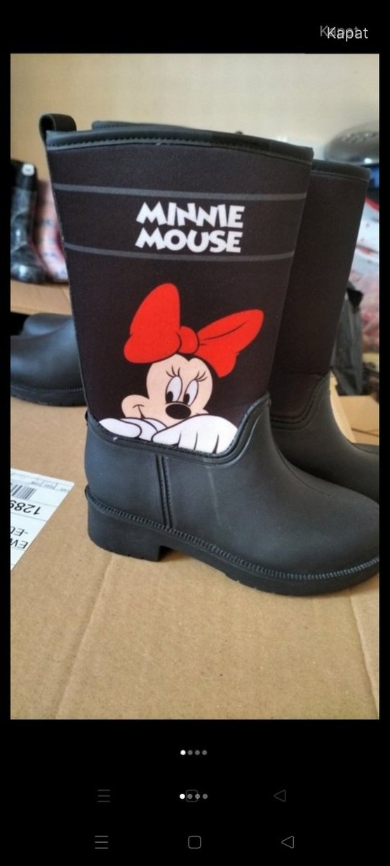 Sıfır ürün Kız çocuklar için Minnie Mouse baskılı siyah içi yünlü çizme 34-35 numaradır