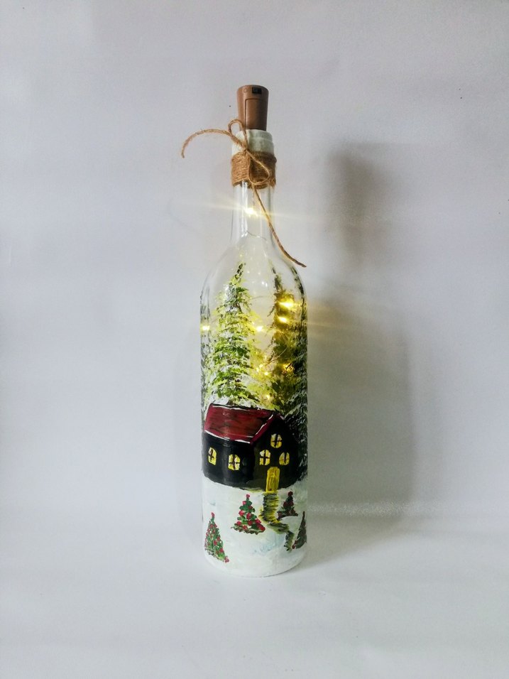 Yeni yıl kış temalı el boyama Işıklı şişe