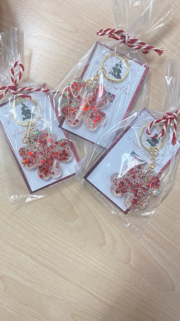 Yeni yıl temalı yonca kırmızı epoksi Anahtarlık