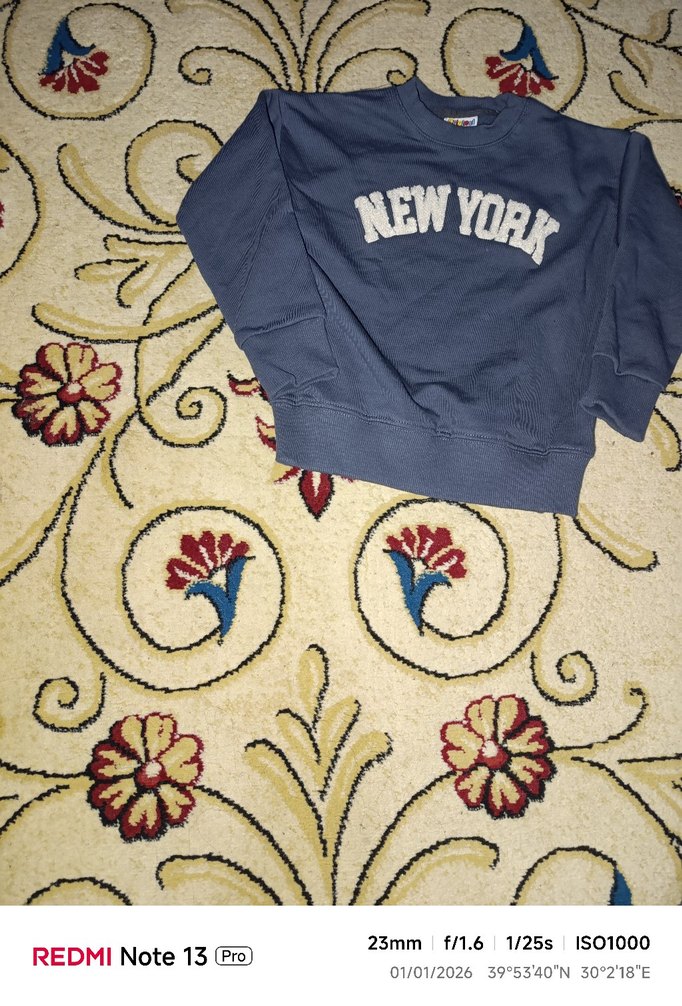 Koyu mavi renkte, uzun kollu ve bisiklet yaka çocuk sweatshirtü. Örme detaylı, bol kesim ve 'NEW YORK' baskılı, yumuşak ve sıcak kumaştan.