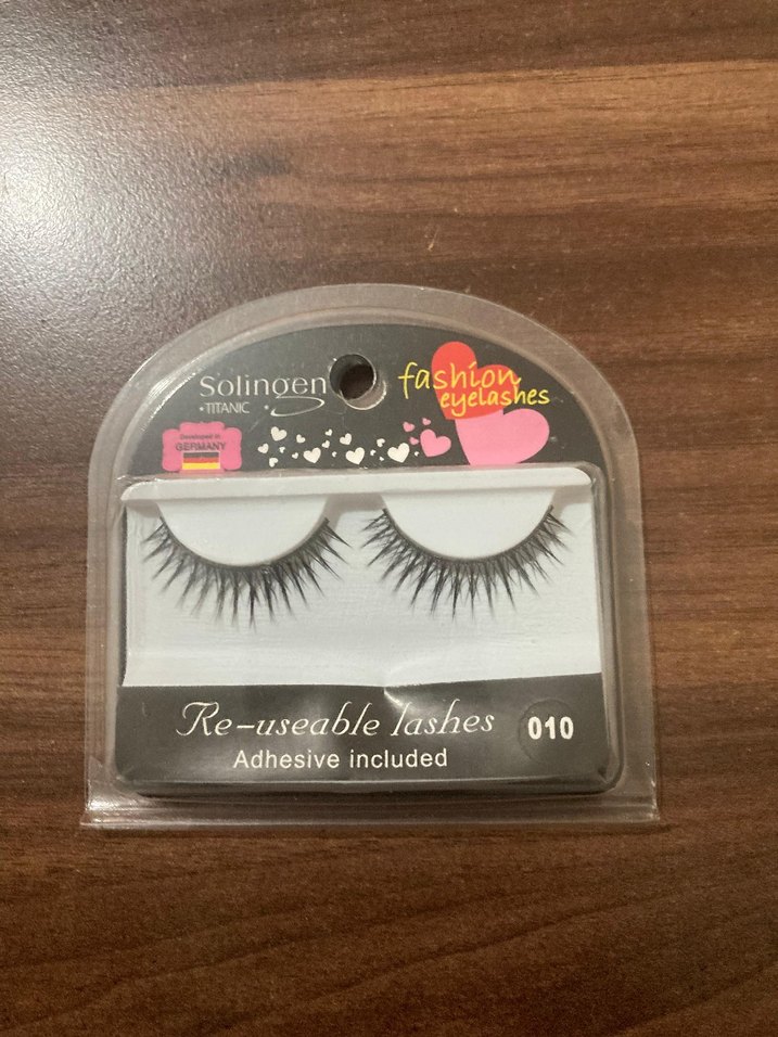 Yapıştırıcı dahil, parlak bej renkte yeniden kullanılabilir takma kirpikler. Solingen markası, moda tarzında. ✨