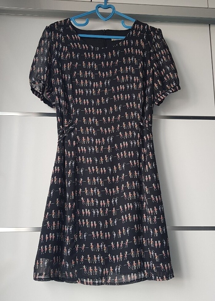 Balon Kol Desenli Şifon Kısa Elbise arkadan fermuarlı iç göstermez Ölçüler Göğüs: 42cm, Uzunluk: 83cm