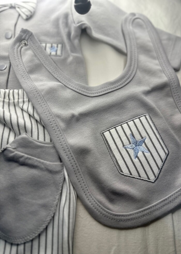 Yeni doğan erkek bebekler için şık ve konforlu beşli takım setimiz satışta!