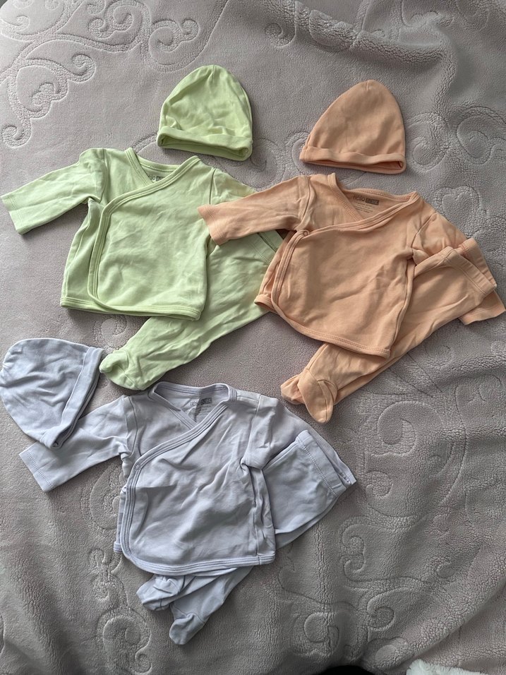 3 adet hellobaby yenıdoğan kıyafetı . Begendıgınız rengı ayrı ayrıda alabılırsınız .Yumuşak pamuktan, uzun kollu ve sade tasarıma sahip pastel renkli bebek hastane kıyafeti setleri. Üst, pantolon ve şapka içerir, kolay giyilir.