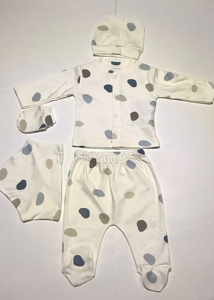 0 pamuk yenidoğan hastane çıkış seti Şapkası eldiveni önlüğüyle birlikte 5 parça