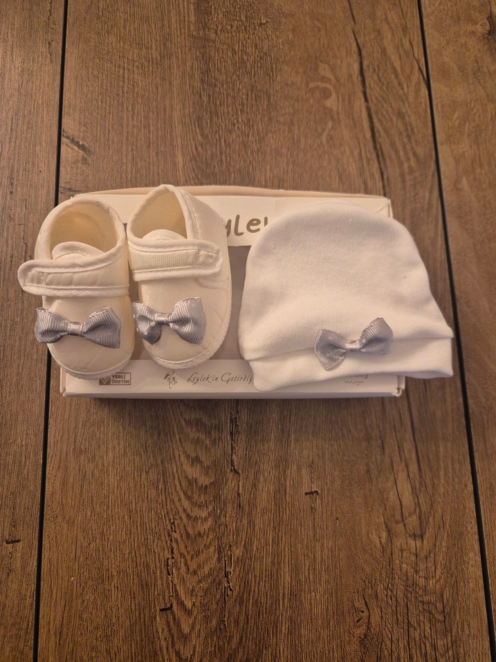 Yenidoğan şapka ayakkabı set, hiç kullanılmadı temiz ürün