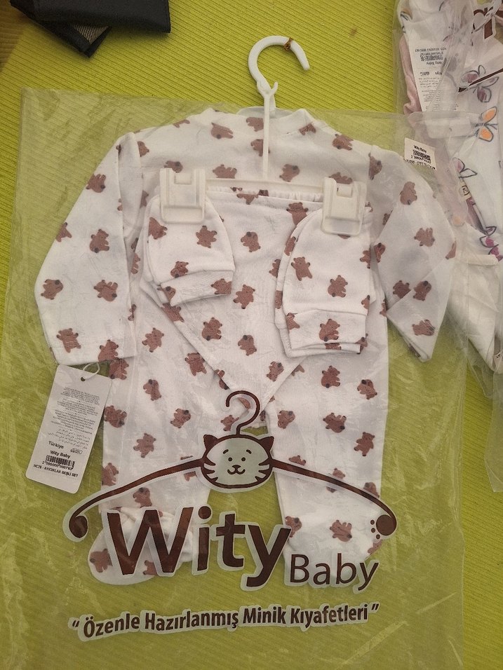 5 parça ( eldiven , şapka, yakalık , patikli alt üst) yenidoğan seti .sıfır ürün paketli gönderim yapılacaktır