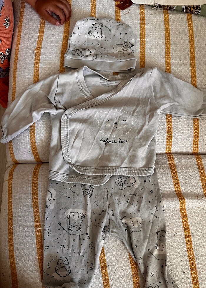 E bebek yenidoğan organik pamuklu şapkalı takım