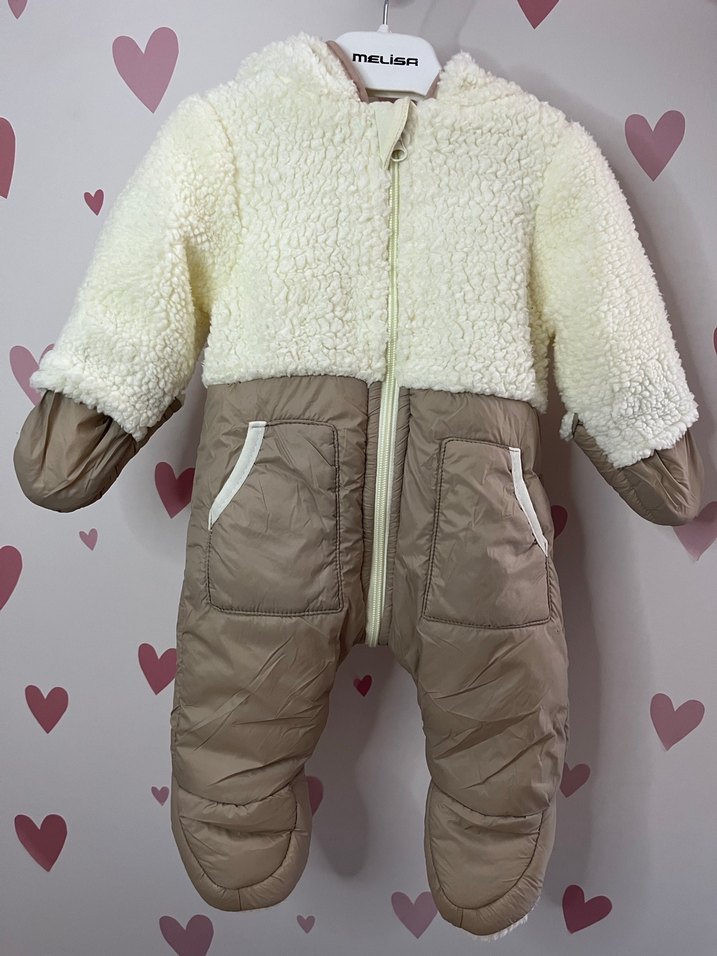 Yenidoğan welsoft patikli mont -Unisex Kürklü Bebek Tulumu 0-6