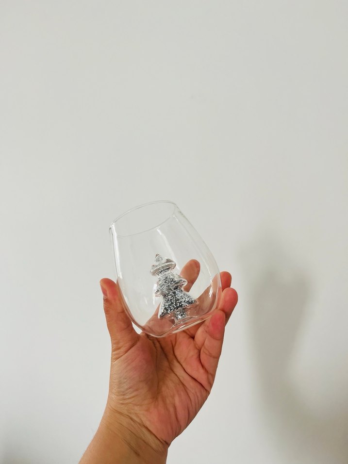 Yurt dışından aldım yılbaşı bardak İçi küçük gri figürlü şeffaf bir bardak, içeceklerinize farklı bir dokunuş katar.