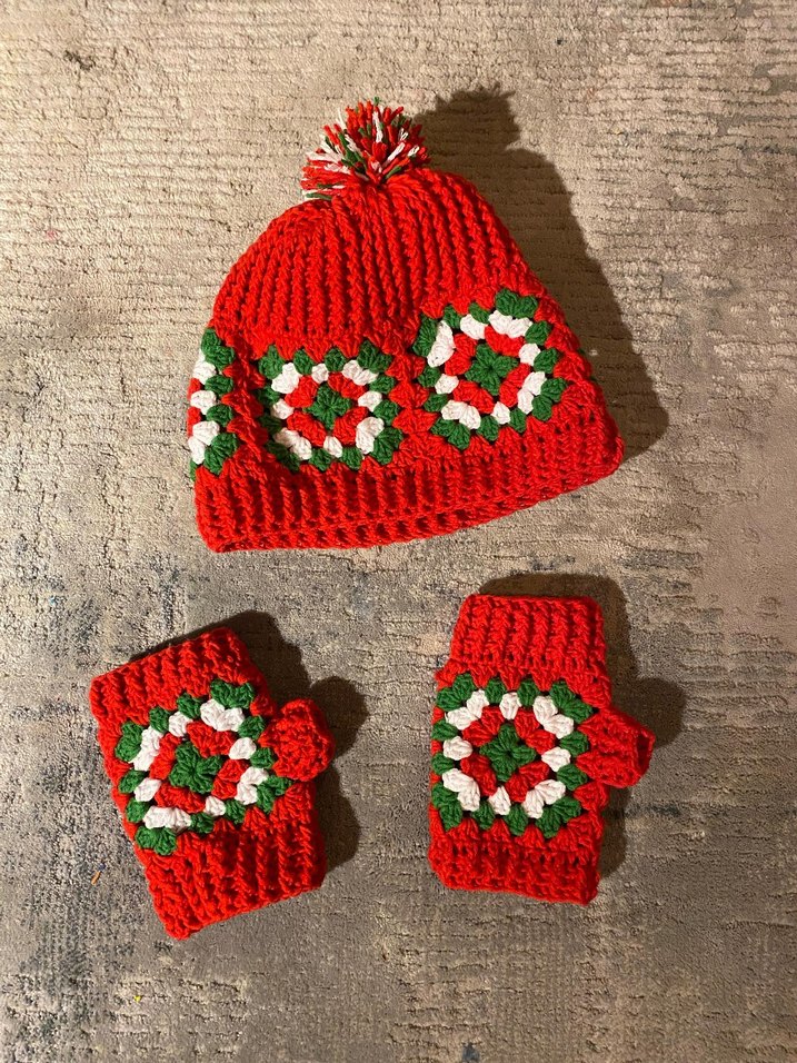 yeniyıl temalı Renkli Örgü Eldiven ve Bere Takımı