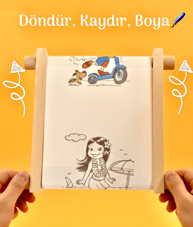 Silindiri çevirerek resmi kaydırma üzerine hazırlanmış harika bir ürün. 10 farklı resim içerir. Paket içeriğinde 6 farklı boya ve 1 adet fırça mevcuttur. !!Stok durumu sorunuz. Yeni ilan açtırınız!!