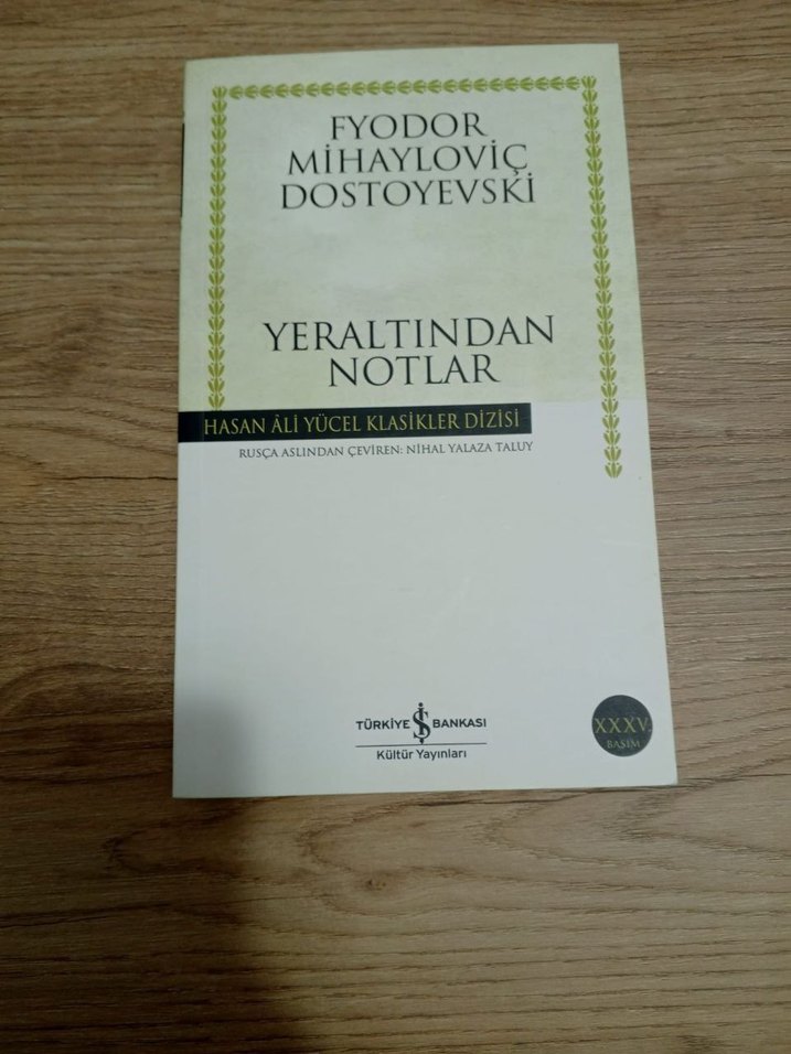 Fyodor Mihayloviç Dostoyevski'nin "Yeraltından Notlar" adlı eseri, Hasan Ali Yücel Klasikler Dizisi kapsamında Nihal Yalaza Taluy tarafından çevrilmiştir. Türkiye İş Bankası Kültür Yayınları tarafından basılmıştır. yeni eksiksiz hasarsız kitap