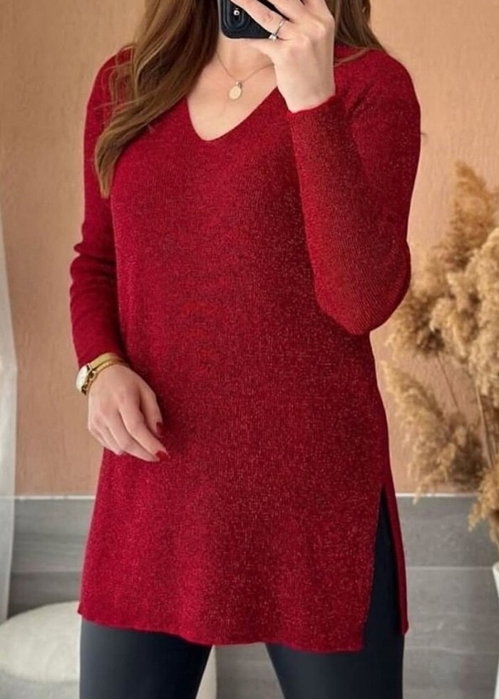 Ürünümüz simli triko olup resimdekinin aynısıdır standart ara beden triko ürünümüz 38 40 42 44 46 beden uyumludur.