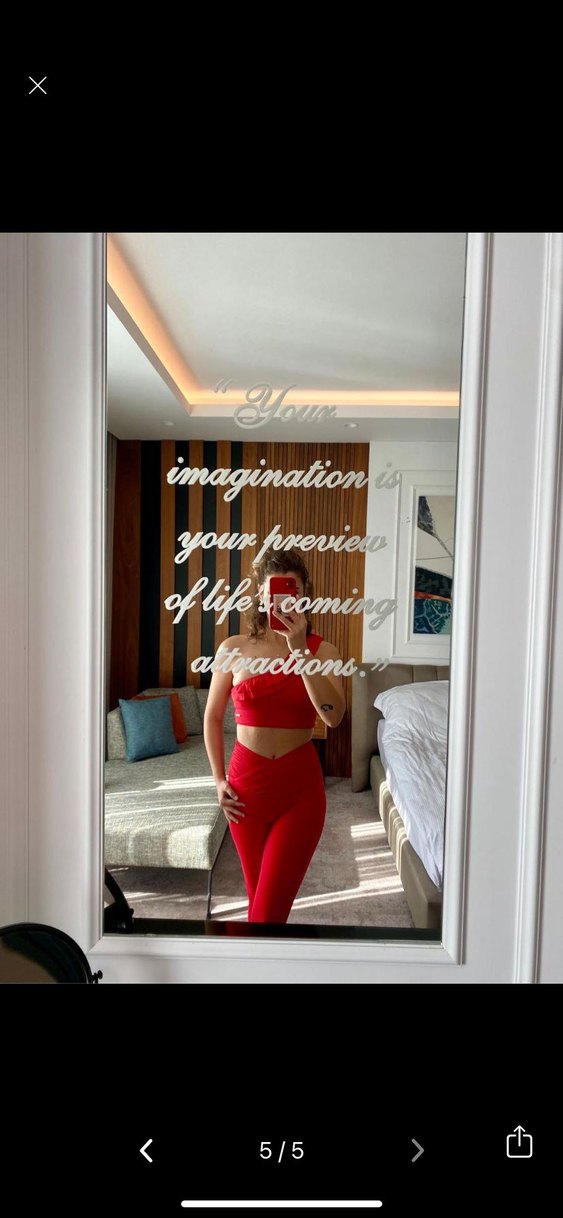 Parlak kırmızı sentetik kumaştan, baskılı ve tek kol üstle tamamlanan, sportif athleisure tarzda büstiyer. ✨