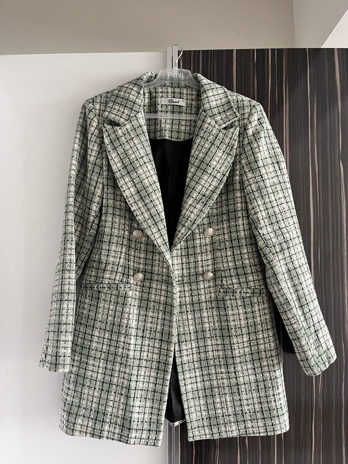 Yeşil ekose desenli, düğmeli ve normal uzunlukta midi blazer. Uzun kollu, regular fit ve ofis için uygun, şık ve rahat bir tasarım. Boy 77-78 cm civarı ,sorunsuzdur . 40 beren yazıyor fakat 36 38 beden için daha uygun olacaktır.