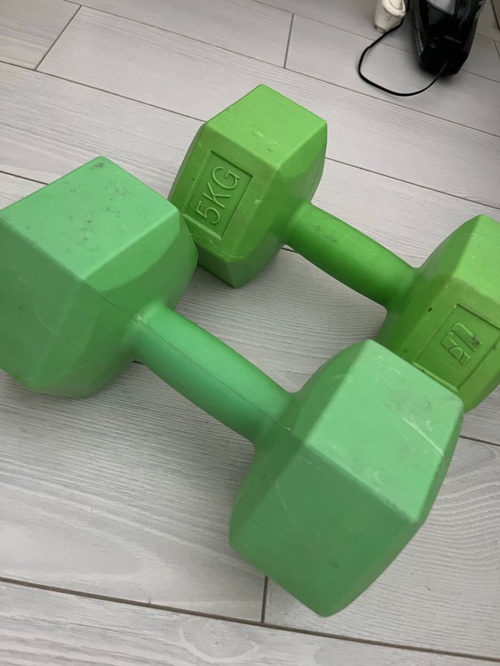 Pürüzsüz yüzeye sahip yeşil renkli 5 KG dambıl çift seti, kuvvet antrenmanları için uygundur. Rahat kavrama sapları bulunur. ️tekli almak için yazınız