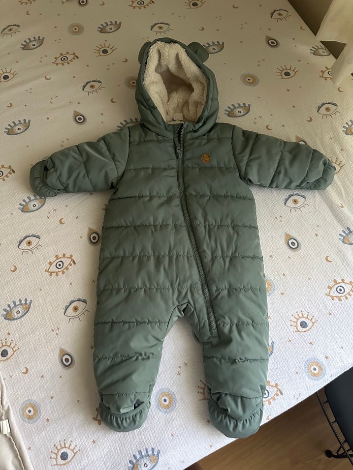 Petrol yeşili renkte, yumuşak ve sıcak kumaştan, kapüşonlu ve kulak detaylı, kürklü bebek kayak tulumu. Önden fermuarlı ve ayakları kapalı, sokak stili için uygun. Hiç bir sorunu yoktur mağazadan alınmış gibi çok kısa kullanıldı zaten. Sıcacık tutuyor kar tatilinde bile kullandık.❄️