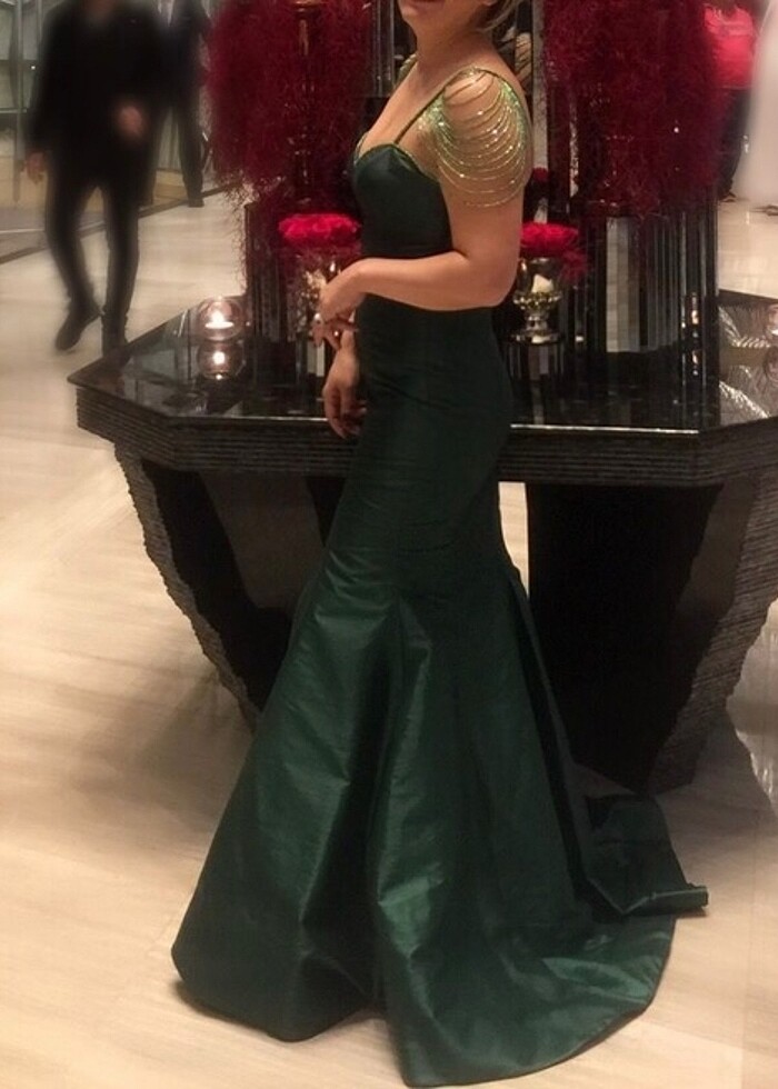 Yeşil balık model abiye elbise İstanbul Bağdat caddesi moda evinde özel dikimdir.Bir kere giyilmiştir. Giyilmiş halini görselde görebilirsiniz Kargo alıcıya aittir