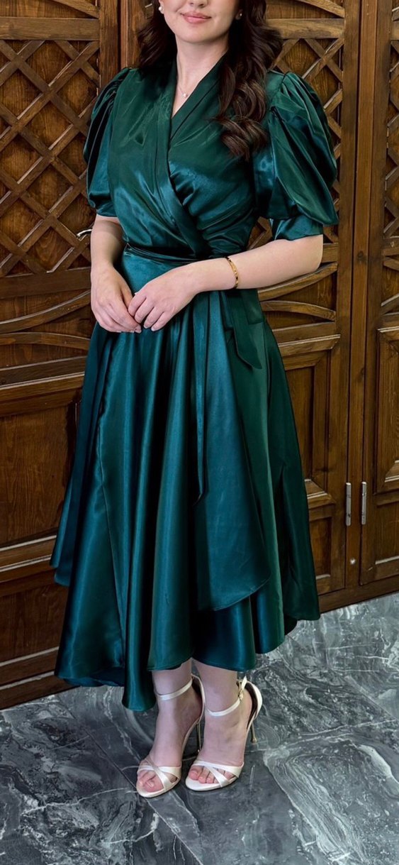 Yeşil abiye elbise. ve yaka kısa Düğünler için uygun.