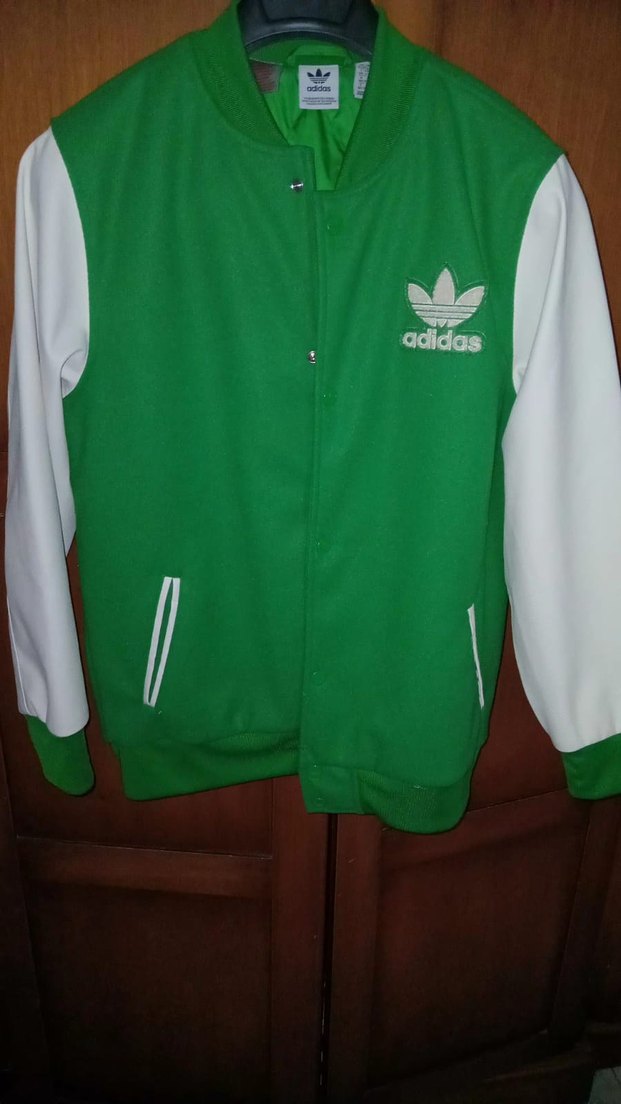 Uzun beyaz kollu, düğmeli önlü yeşil Adidas ceket. Yumuşak ve sıcak kumaştan, baskılı logo detaylı, spor ve günlük kullanıma uygun. kolları süet deri mont ceket tarzı ORİJİNAL ÜRÜN