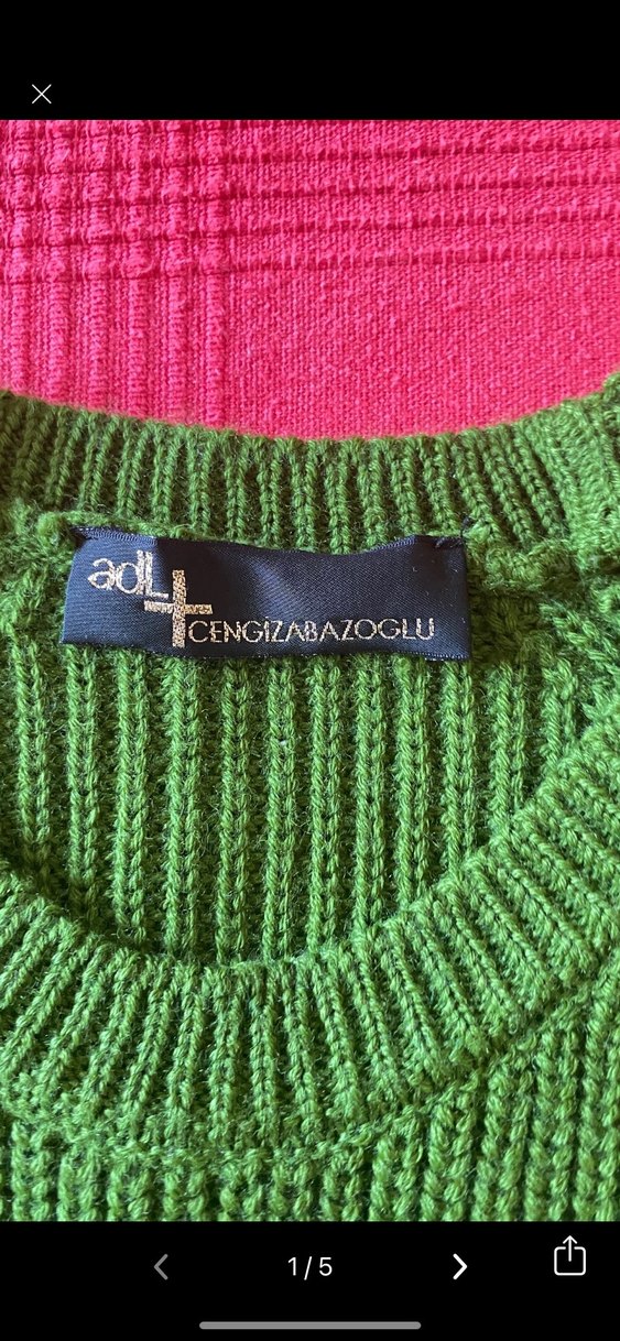 Yeşil renkli, nakış detaylı, yuvarlak yakalı ve uzun kollu örme kadın kazak. Bol kesim ve bohem tarzıyla günlük kullanıma uygundur. Üzerinde 'CENGIZABAZOGLU' etiketi bulunur.
