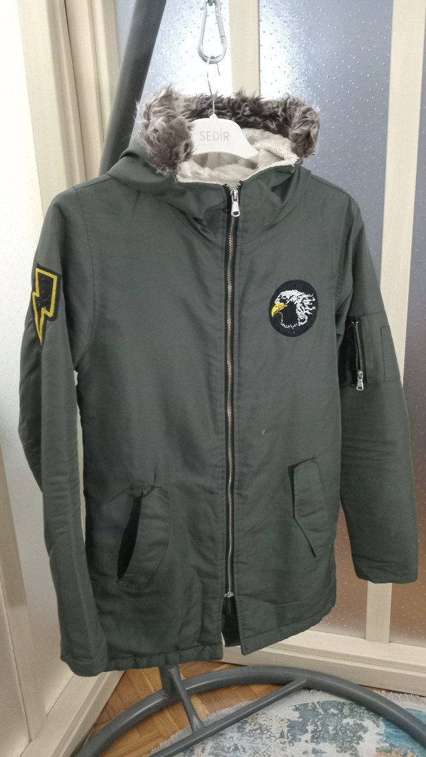 Yeşil, arma detaylı erkek Mont