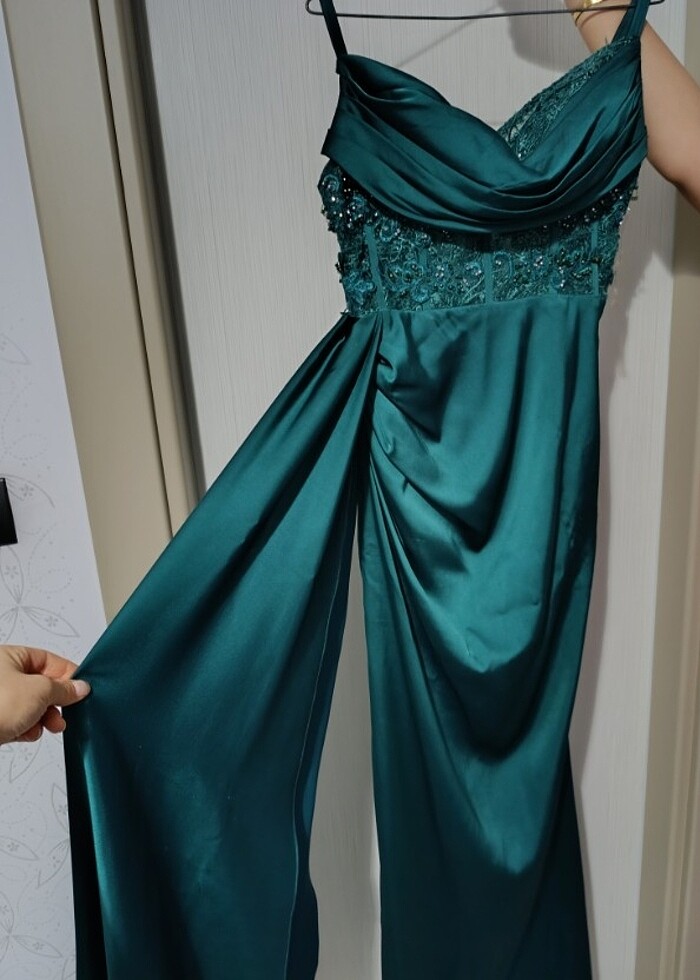Yeşil askılı abiye